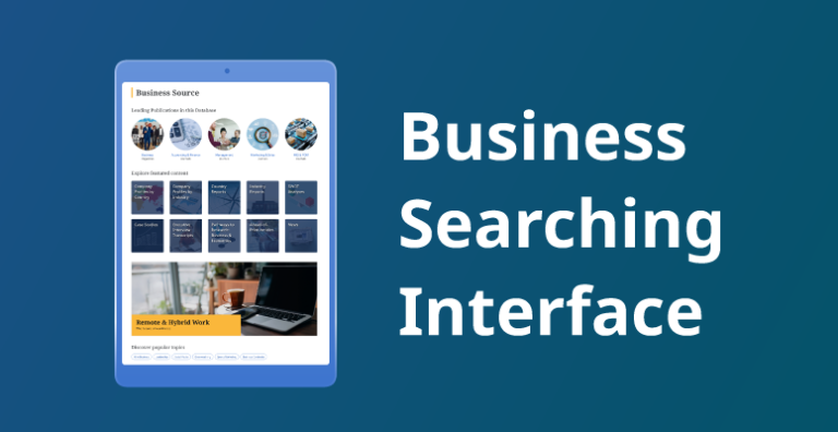 Business Searching Interface (BSI) de EBSCO ofrece una interfaz limpia y moderna para que la investigación empresarial sea más intuitiva y eficiente.