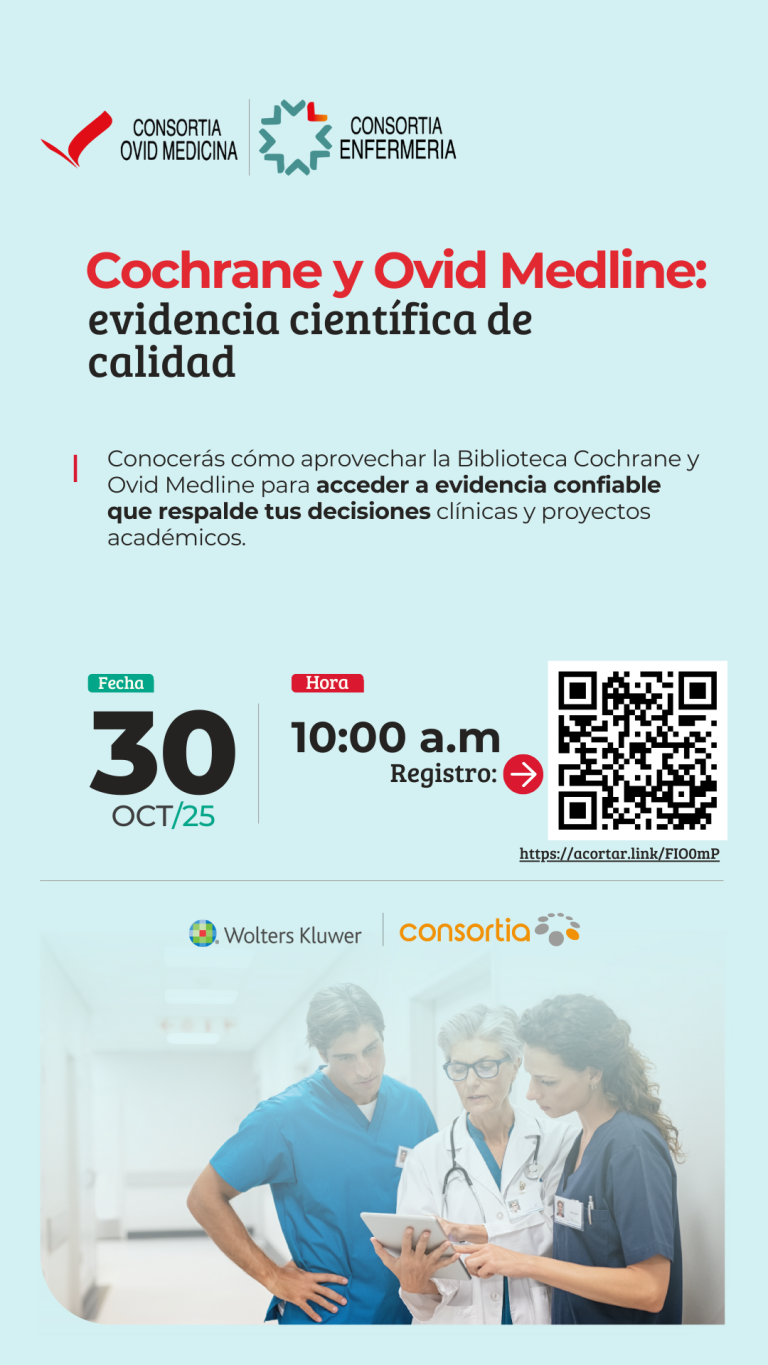En estos encuentros tendrán la oportunidad de conocer en detalle los recursos disponibles a través del consorcio: revistas especializadas, libros en inglés, la prestigiosa Colección de Libros de Gideon y la plataforma Cochrane. Estas sesiones están diseñadas para optimizar el uso de estas valiosas herramientas académicas y de investigación. Les recordamos que todos los asistentes recibirán certificado de asistencia. ¡Esperamos contar con su participación!
